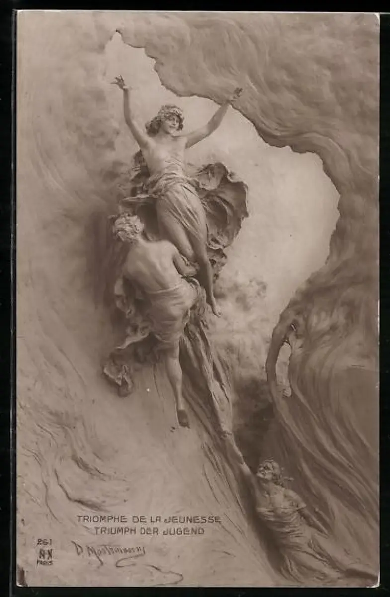 Künstler-AK Domenico Mastroianni: Triumph der Jugend, Greisin und emporsteigendes Mädchen