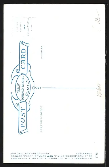 Personenbezogene Daten auf der Rückseite der Karte wurden durch blauen Textmarker unkenntlich gemacht. Die blauen Stellen sind auf die Vorderseite durchgeweicht und wirken sich negativ auf das Postkartenfoto aus