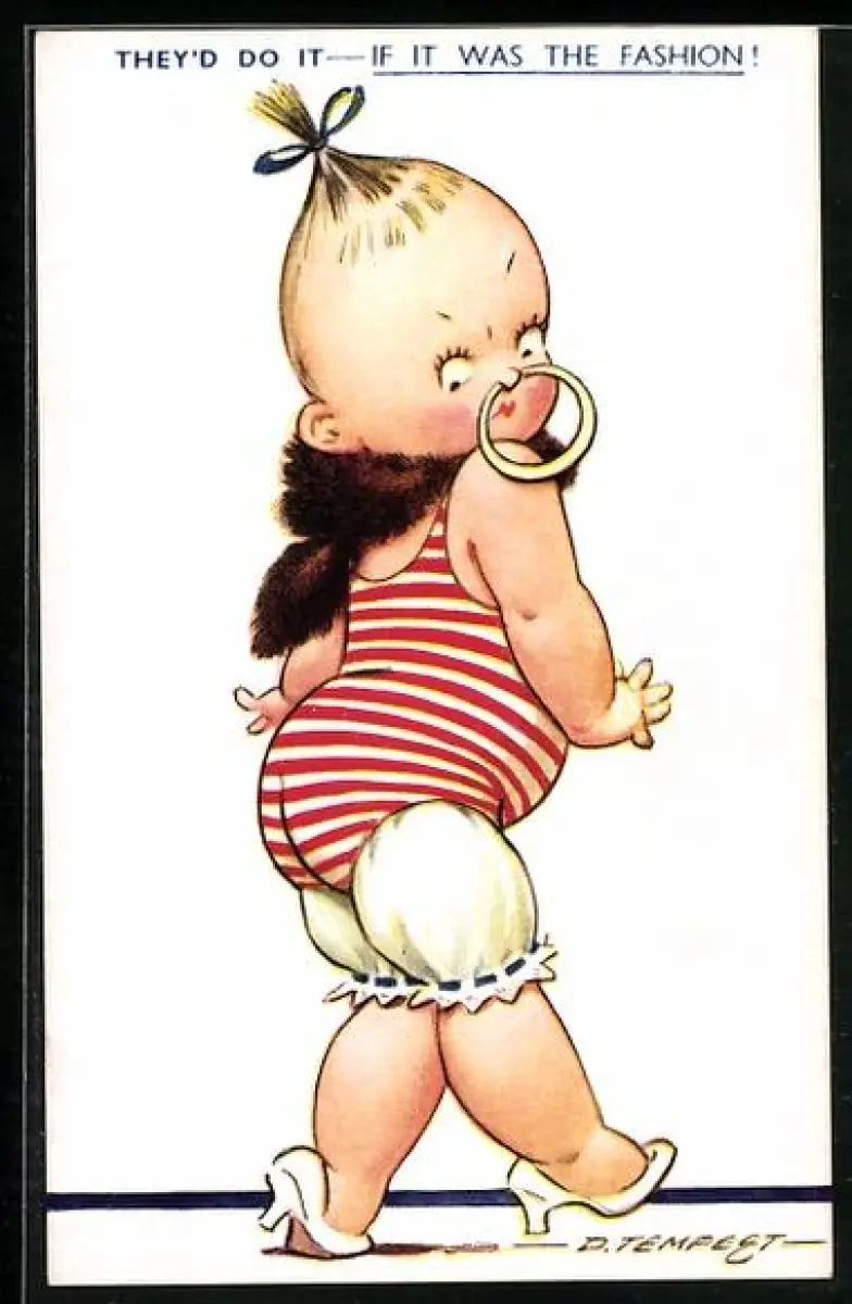 Künstler-AK Douglas Tempest: Kind mit Nasenring und Pelz