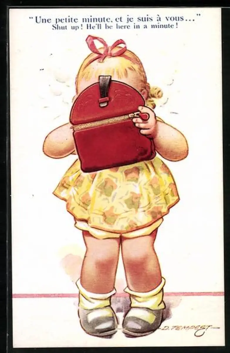 Künstler-AK Douglas Tempest: Mädchen mit roter Handtasche