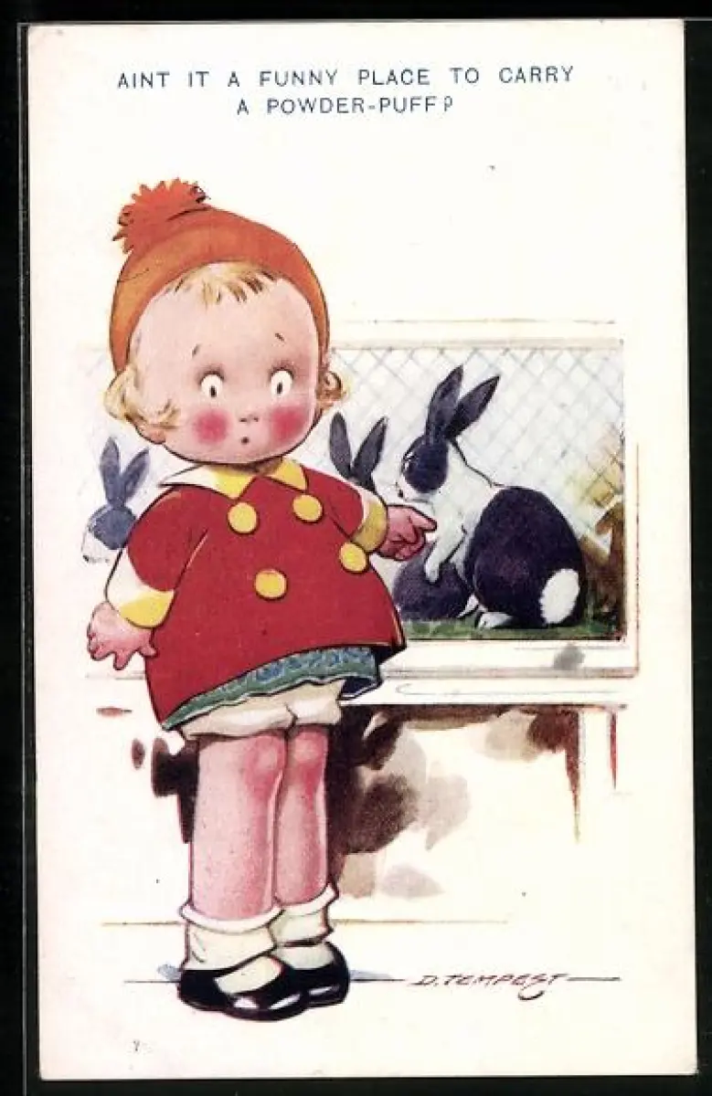 Künstler-AK Douglas Tempest: Mädchen wundert sich über Kaninchen