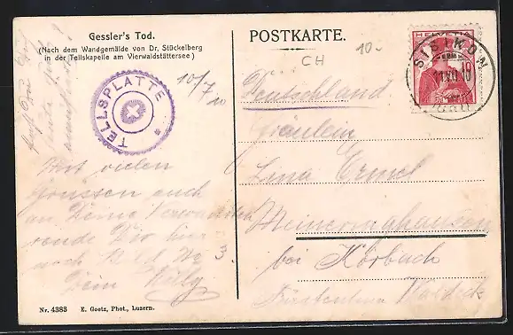 Künstler-AK Dr. Stückelberg: Gessler`s Tod, Tellskapelle am Vierwaldstätter See