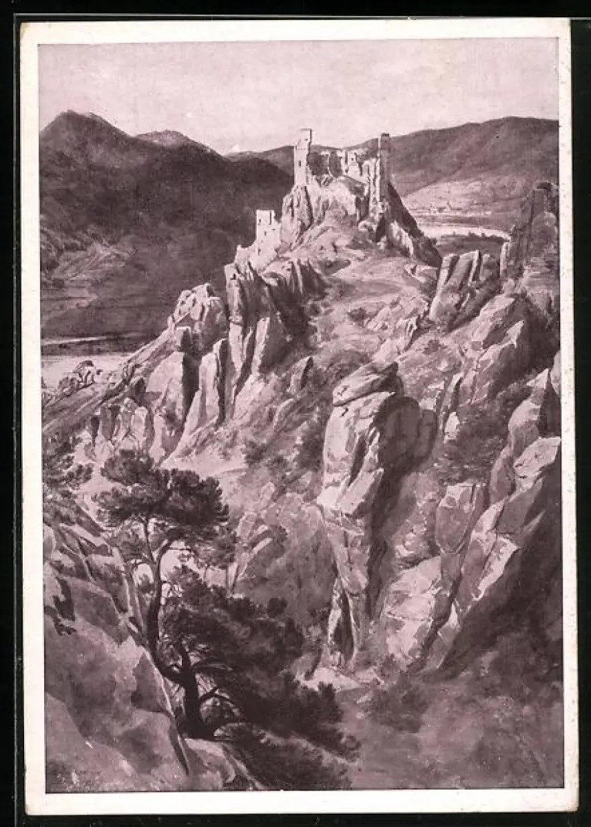 Künstler-AK Dürnstein, Ruine Dürnstein mit Umgebung