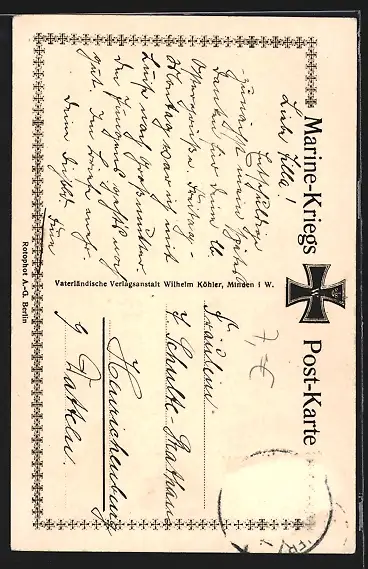 alte Ansichtskarte, gelaufen, Briefmarke entfernt, rückseitig Oberflächenschaden, guter Zustand