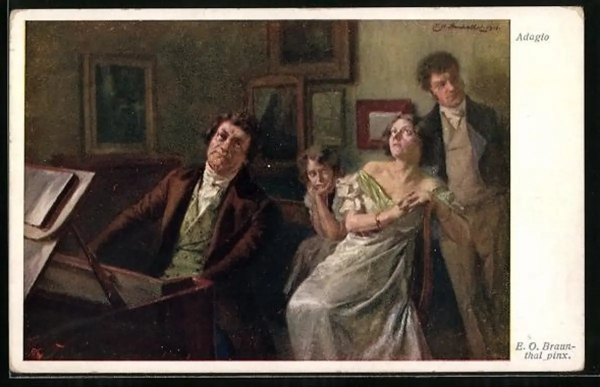 Künstler-AK E. O. Brauntal: Adiago, Mann spielt auf Klavier