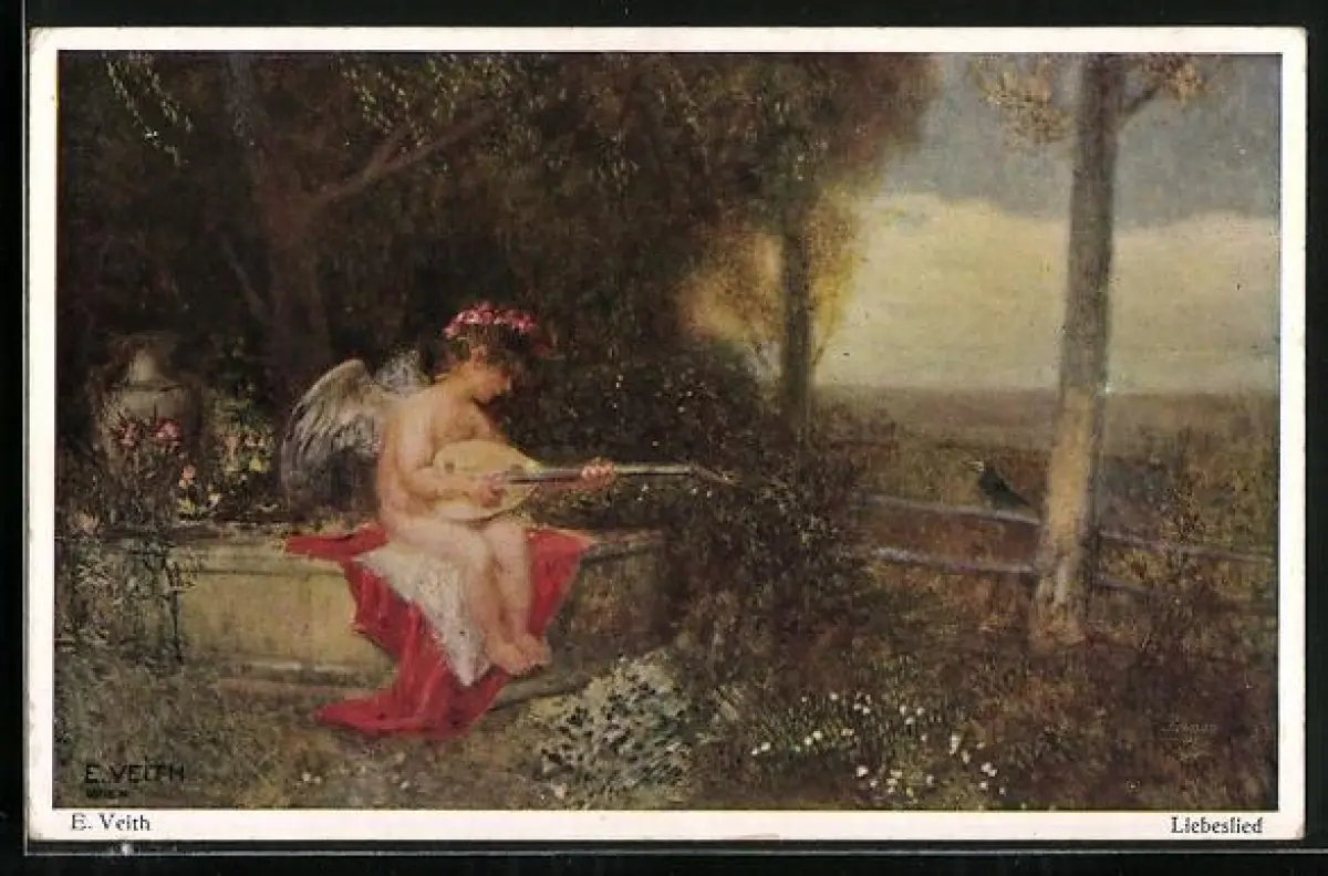 Künstler-AK E. Veith: Liebeslied, Amor spielt auf einer Laute