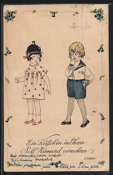Künstler-AK E. Weber: Kleiner Junge spricht ein Mädchen an