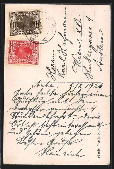 gelaufen 1926, Eckknicke li. oben u. re. unten, Bugspur re. oben, guter Zustand