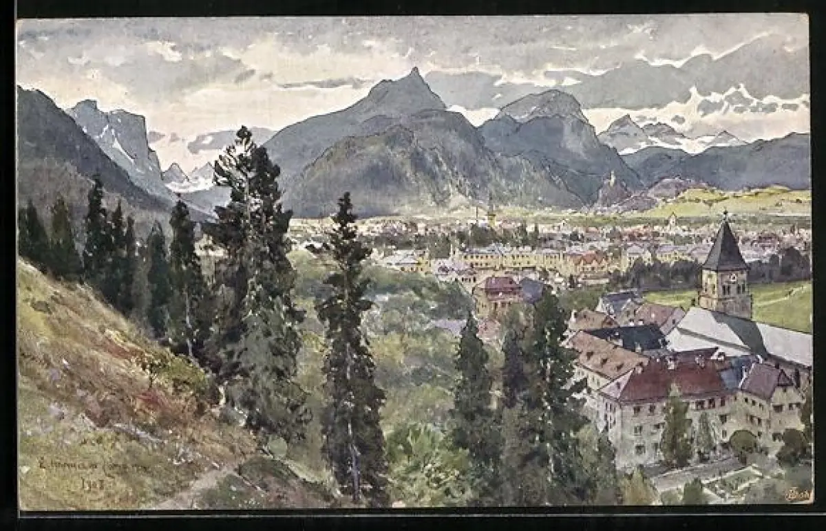 Künstler-AK Edward Harrison Compton: Bad Reichenhall, Teilansicht