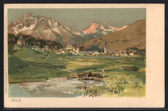 Künstler-AK Edward Theodore Compton: Igls, Blick auf den Ort und die Berge