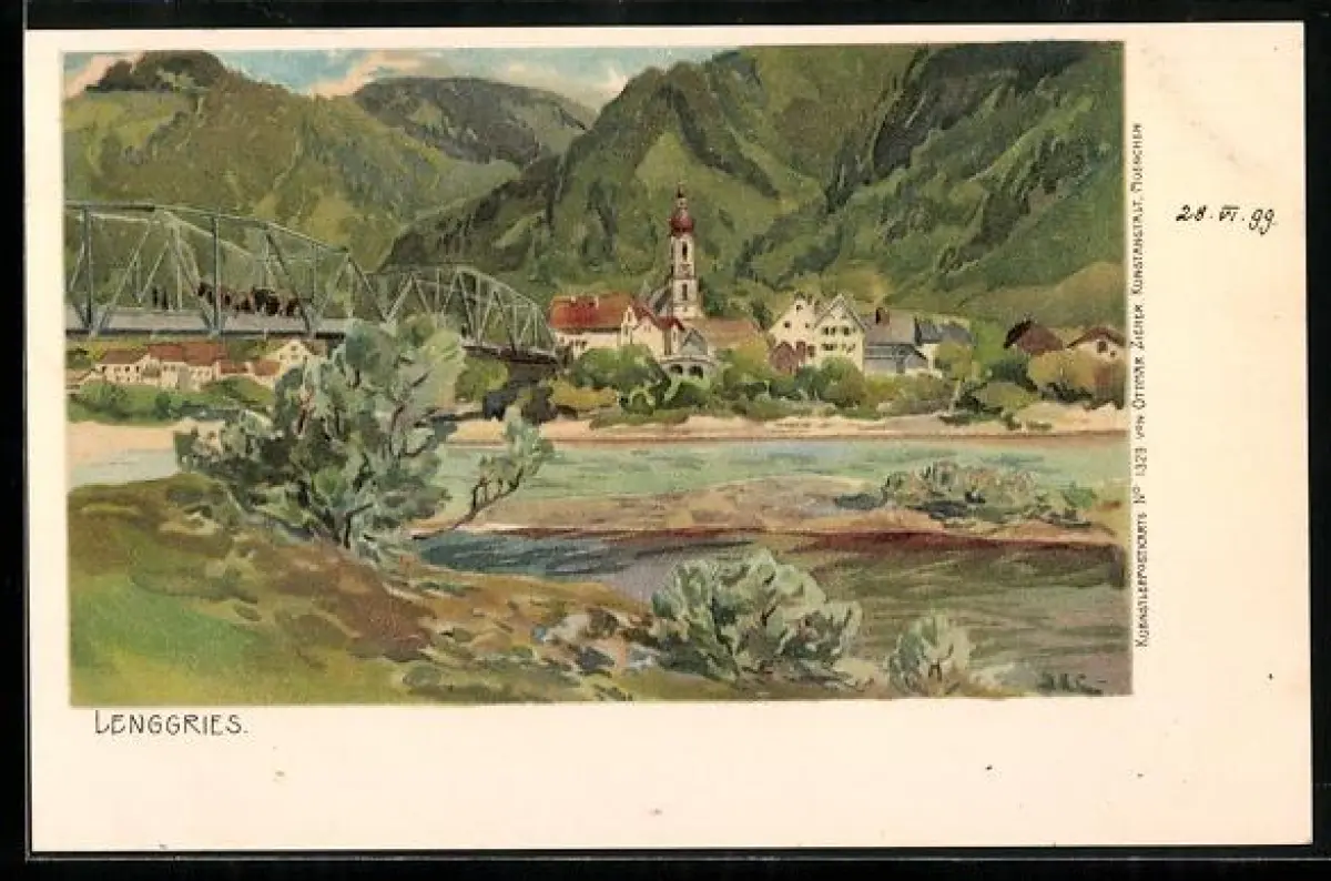 Künstler-AK Edward Theodore Compton: Lenggries, Panorama vom andern Ufer