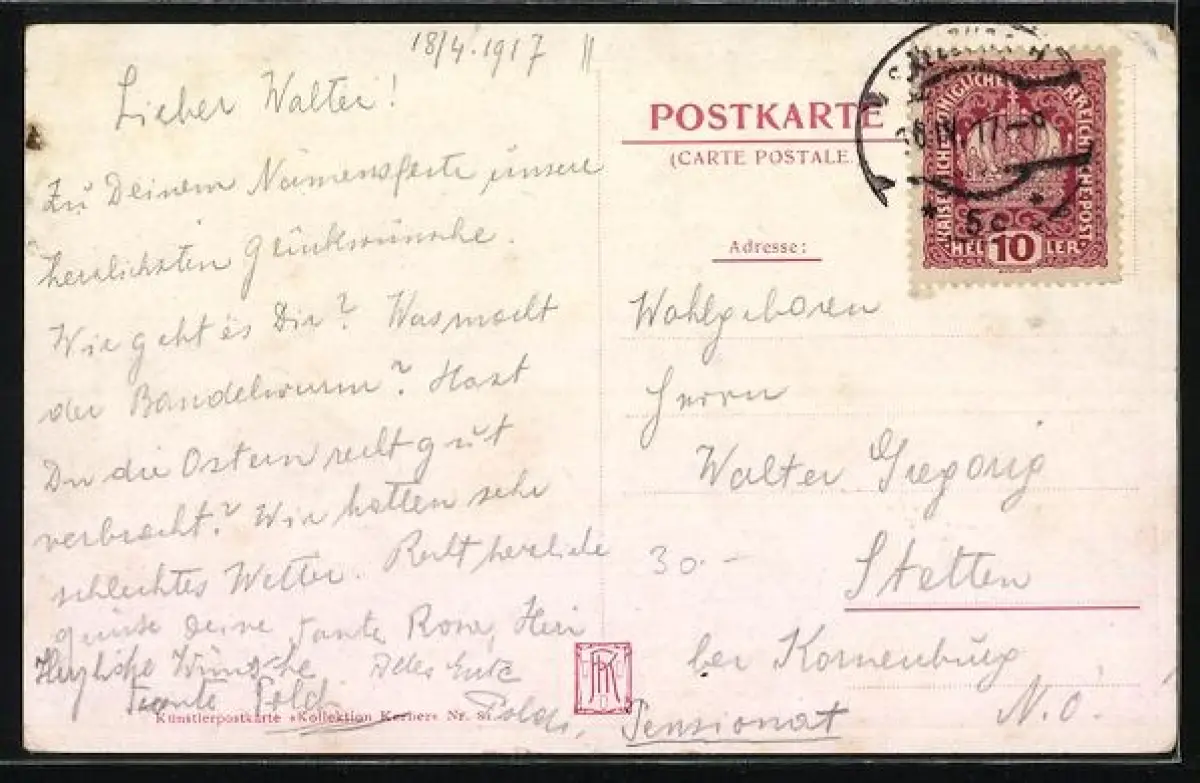 alte Ansichtskarte, gelaufen 1917, Eckknick li. oben, minimaler Einriss oben mittig, guter Zustand