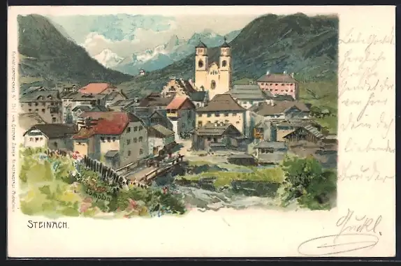 Künstler-AK Edward Theodore Compton: Steinach, Ortsansicht von oben