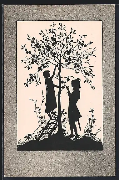Künstler-AK Einäuglein, Zweiäuglein, Dreiäuglein, Scherenschnittpostkarten