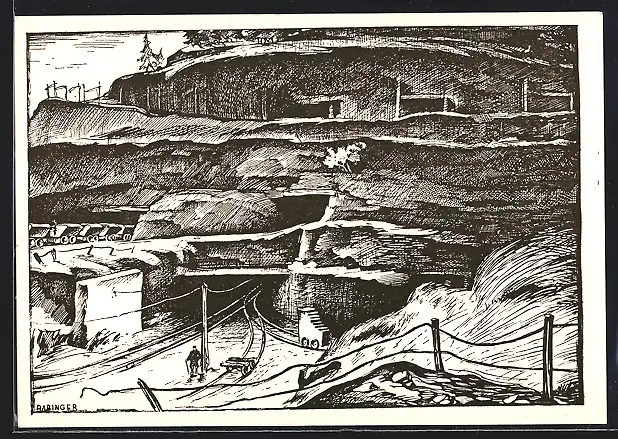 Künstler-AK Eingang zur Erzgrube Langengrund