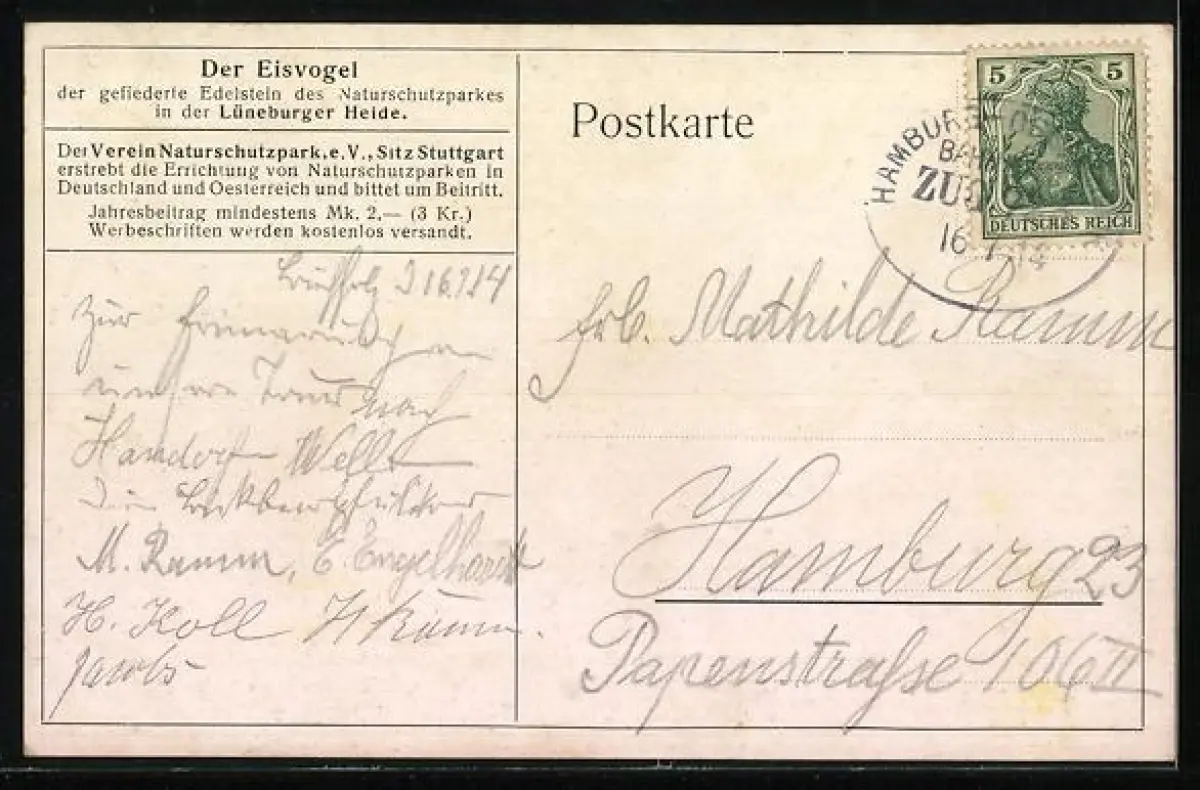 Künstler-AK Eisvogel an einem Fluss in der Lüneburger Heide