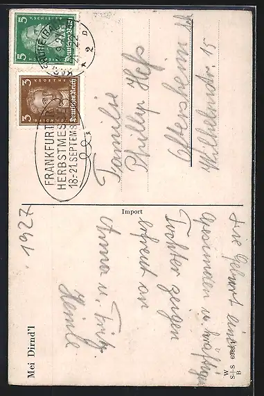 alte Ansichtskarte, gelaufen 1927, Eckknick re. unten, guter Zustand