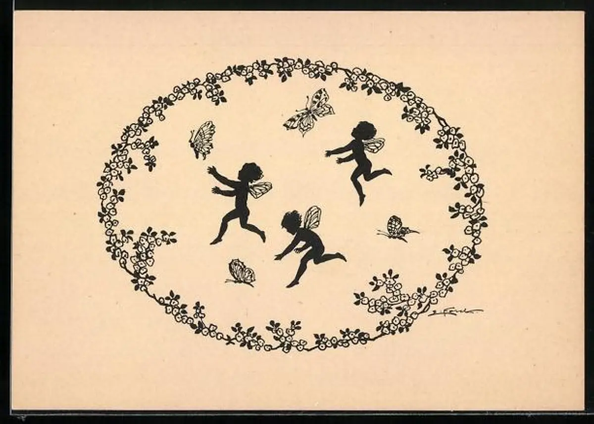 Künstler-AK Elsbeth Forck: Elfen haschen Schmetterlinge