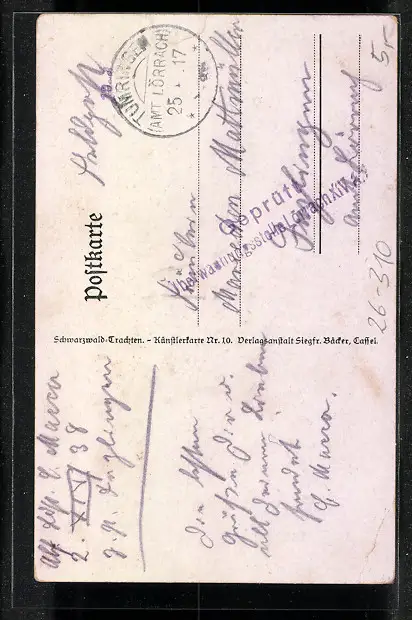 alte Ansichtskarte, gelaufen 1917 als Feldpost, Stempelspur, guter Zustand