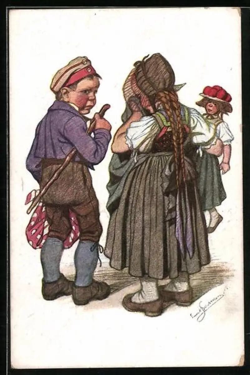 Künstler-AK Emil Beithan: Schwarzwälder Tracht, Mädchen weint beim Abschied