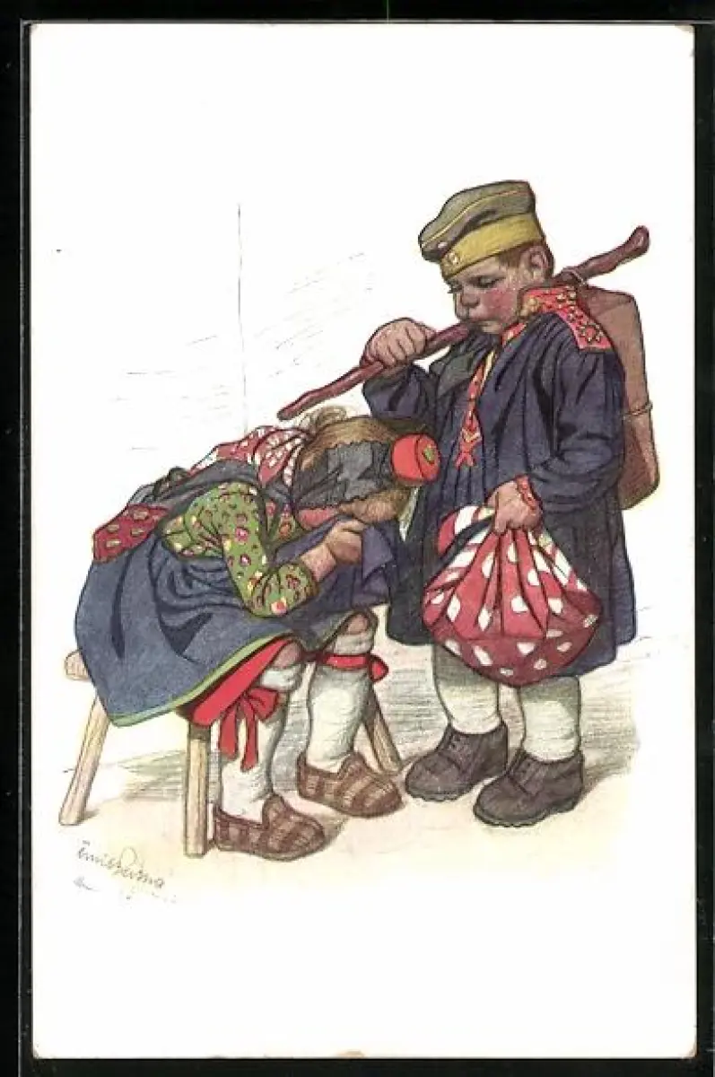 Künstler-AK Emil Beithan: weinende Frau nebst ihrem Soldaten