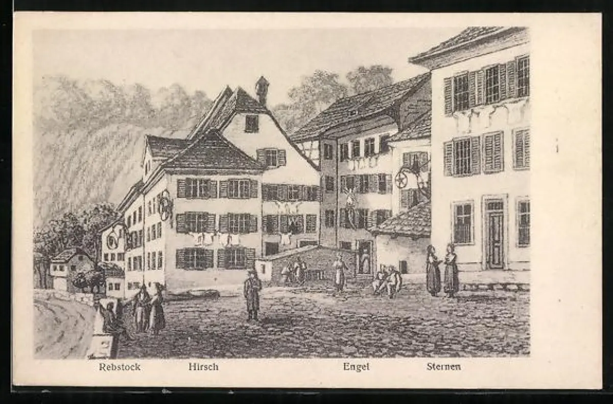 Künstler-AK Ennetbaden, Gasthäuser zum Rebstock, Hirsch, Engel und Sternen