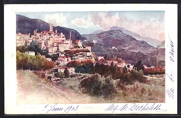 Künstler-AK Ernest Lessieux: Grasse, Blick auf die Stadt