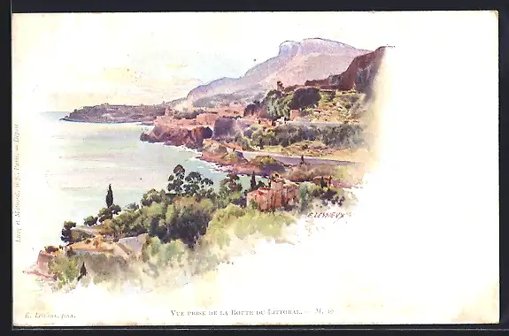 Künstler-AK Ernest Lessieux: Vue prise de la Route du Littoral, Chocolats & Thé de la Cie Coloniale