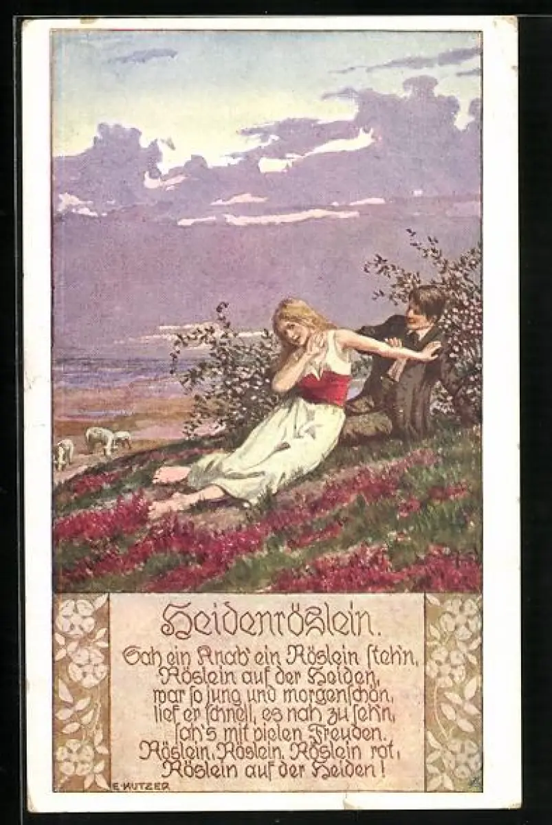 Künstler-AK Ernst Kutzer: Heidenröslein, Fräulein lehnt ihre Verabredung ab