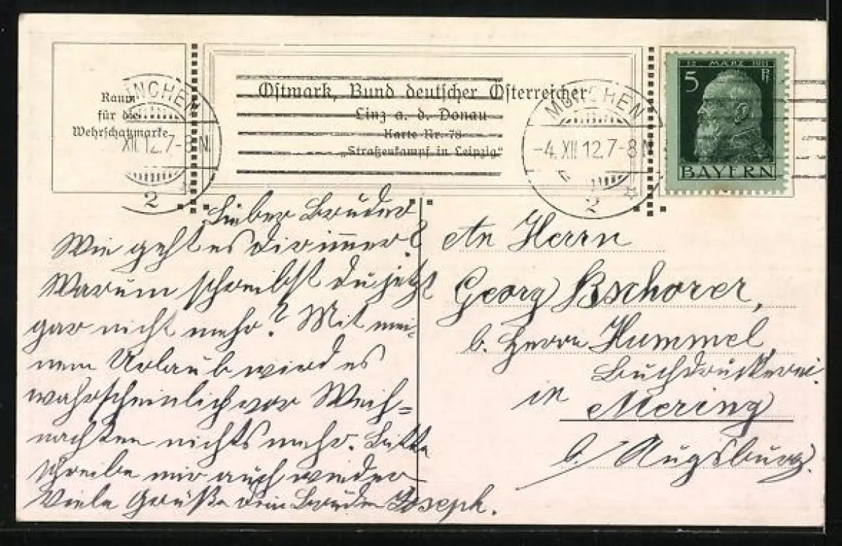 alte Ansichtskarte, gelaufen 1912, Stempelspur, guter Zustand