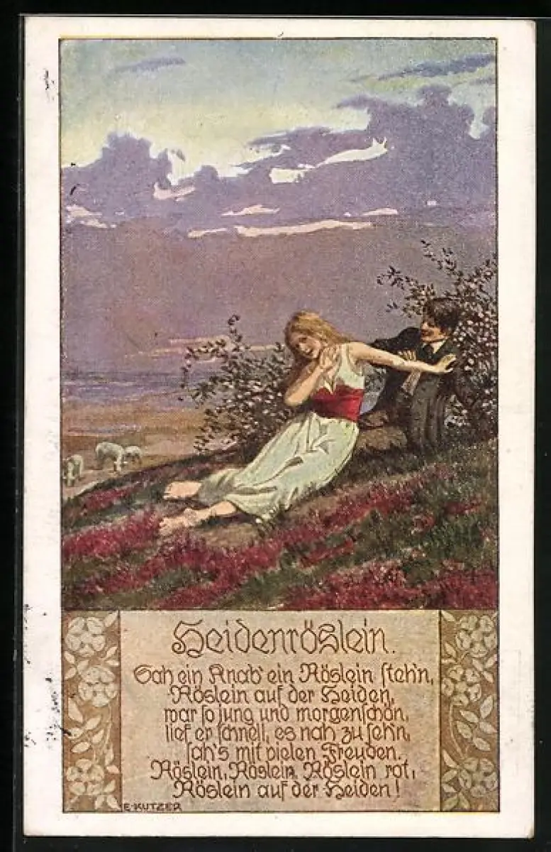 Künstler-AK Ernst Kutzer: Lied Heideröslein, Kinder auf einem Hügel