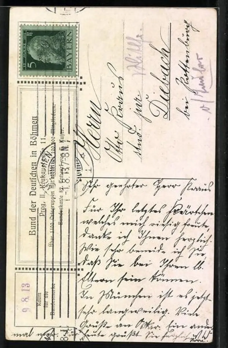 gelaufen 1913, Eckknick unten re., guter Zustand
