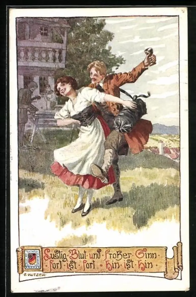 Künstler-AK Ernst Kutzer: Wanderbursche tanzt mit seiner Geliebten