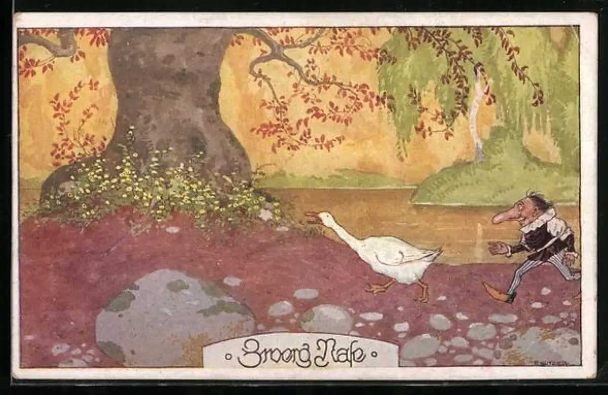 Künstler-AK Ernst Kutzer: Zwerg Nase läuft Gans nach, Märchen