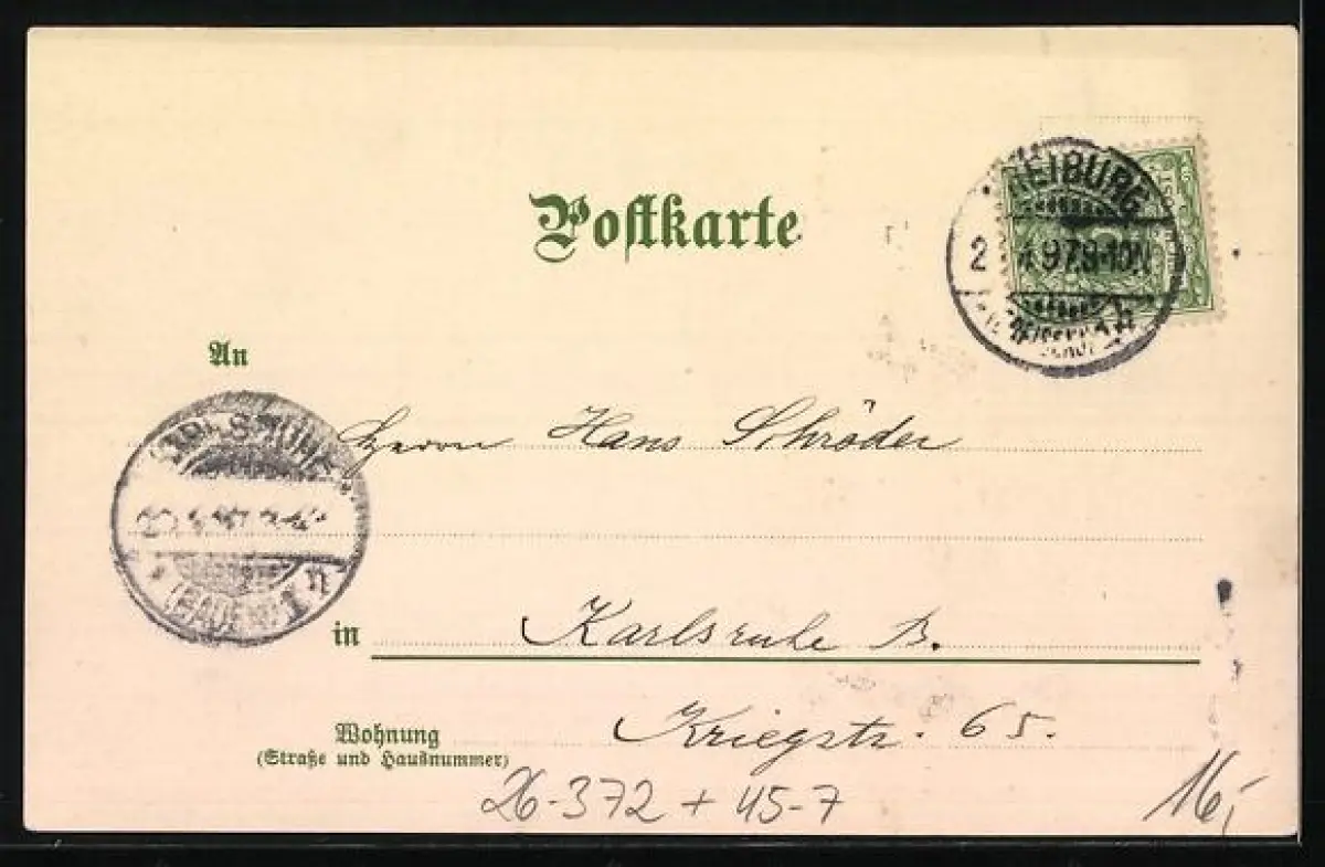 alte Ansichtskarte, gelaufen 1897, guter Zustand