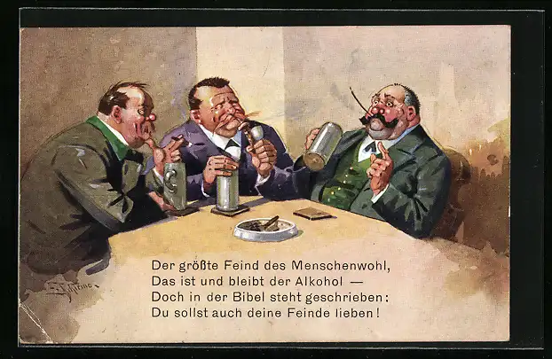 Künstler-AK Ernst Schlemo: Der grösste Feind des Menschenwohl, das ist und bleibt der Alkohol..., Biertrinker