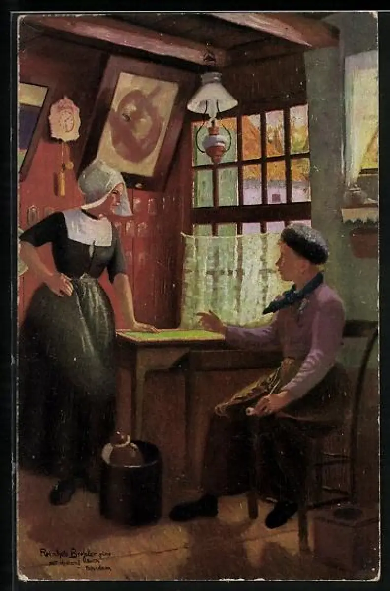 Künstler-AK Erpaco-Kunstverlag Nr. 517, Plauderei, Holländerinnen in Tracht im Gespräch