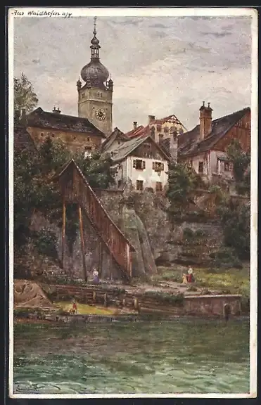 Künstler-AK Erwin Pendl: Waidhofen a. d. Ybbs, Ansicht gegen Stadtturm