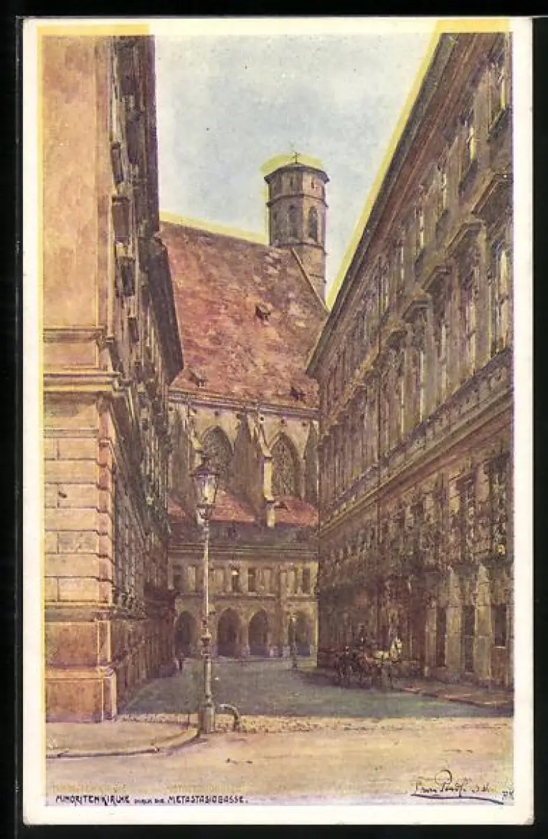 Künstler-AK Erwin Pendl: Wien, Minoritenkirche durch die Metastasiogasse