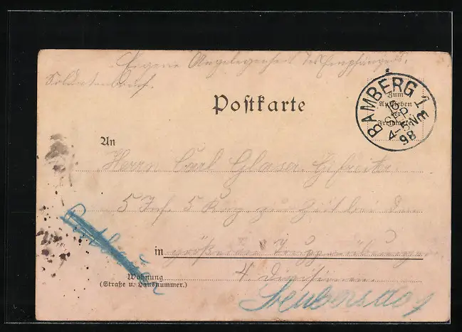 alte Ansichtskarte, gelaufen 1898, guter Zustand