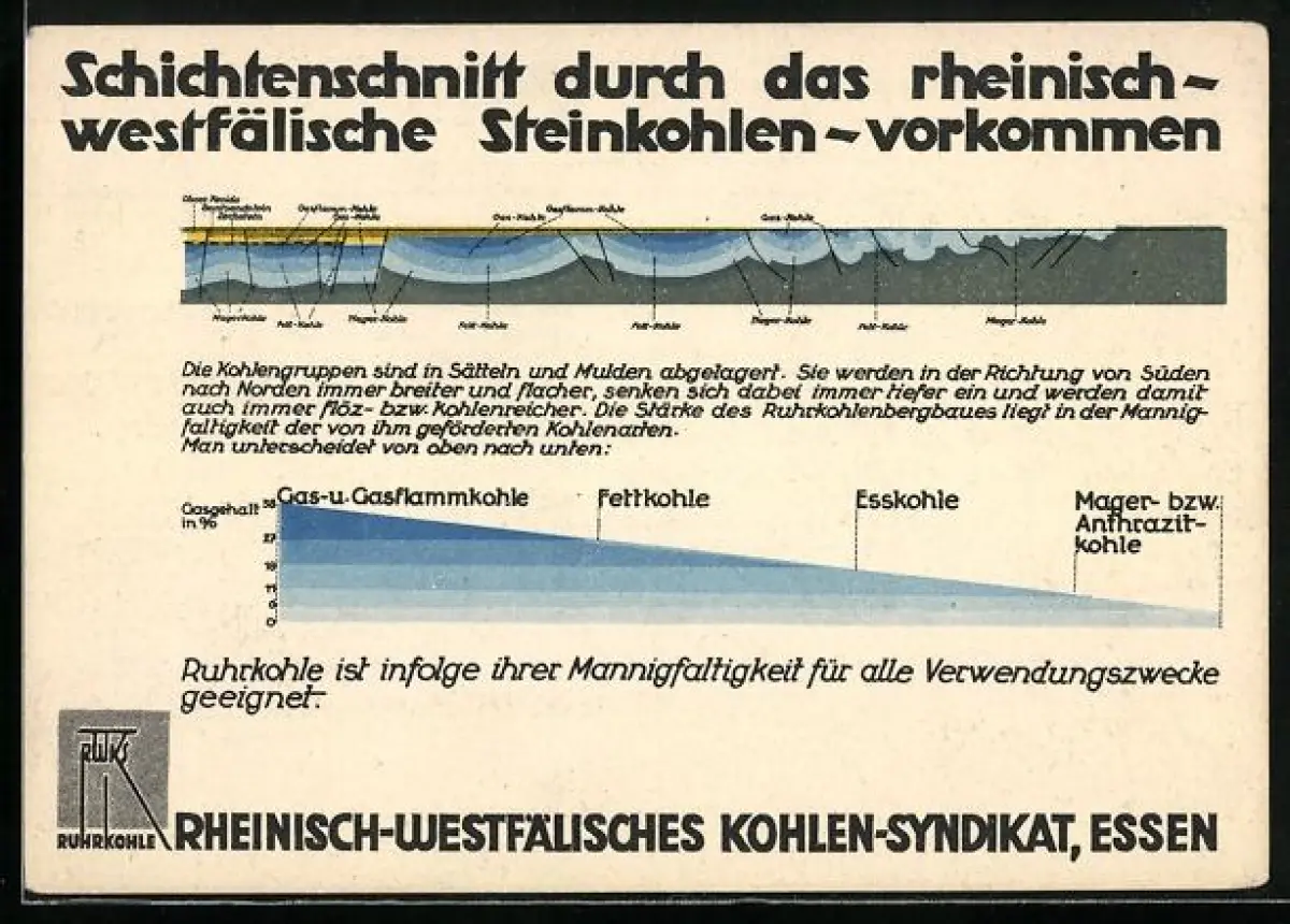 Künstler-AK Essen, Rheinisch-Westfälisches Kohlen-Syndikat, Schichtenschnitt