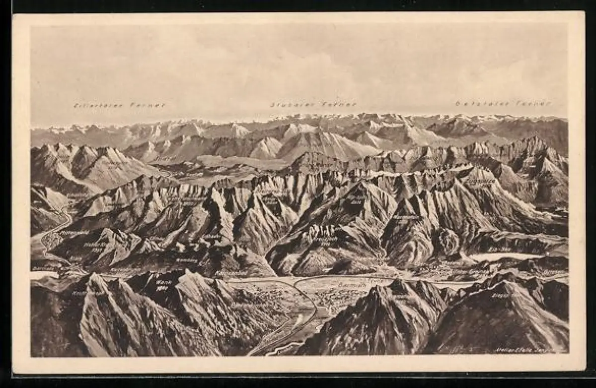 Künstler-AK Eugen Felle: Alpen um Garmisch und Zugspitze