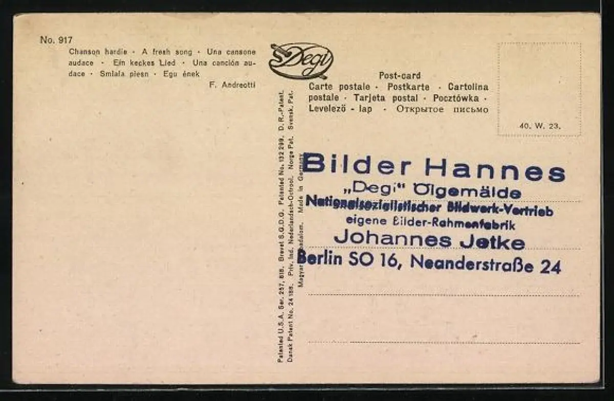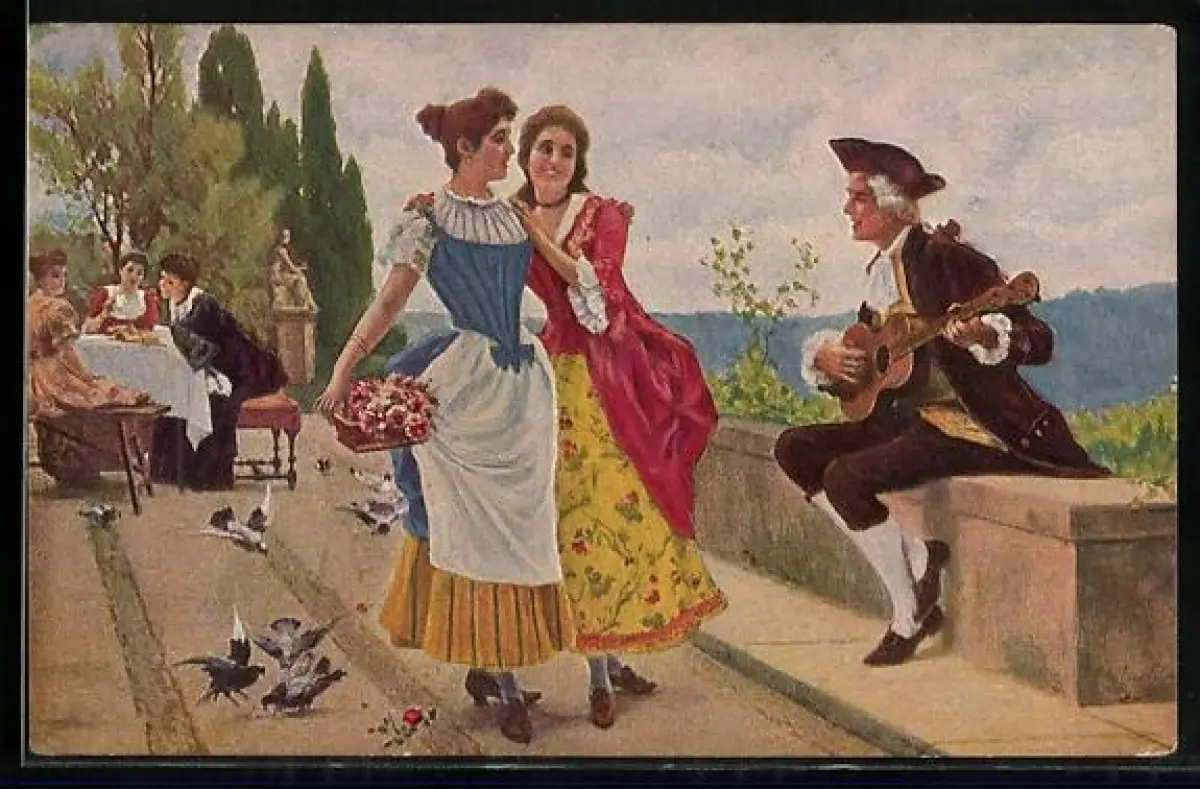 Künstler-AK F. Andreotti Degi Nr. 917, Musiker spielt für Mädchen ein Lied
