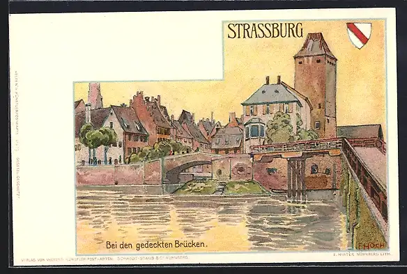Künstler-AK F. Hoch: Strassburg, Partie bei den gedeckten Brücken