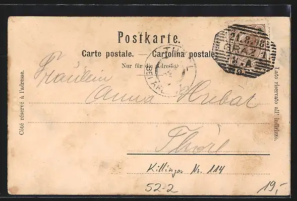 alte Ansichtskarte, gelaufen 1898, Stempelspur, guter Zustand