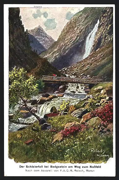 Künstler-AK F.A.C.M. Reisch: der Scheierfall bei Badgastein am Nassfeld