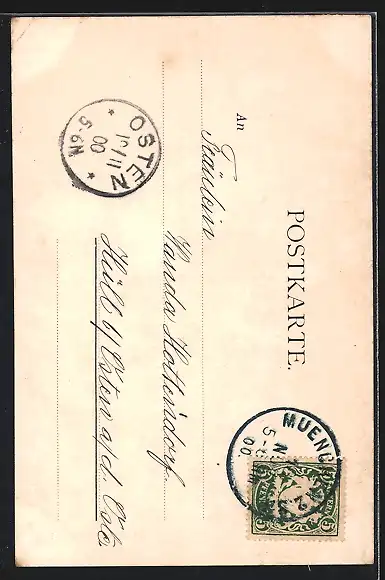 alte Ansichtskarte, gelaufen 1900, Eckknick oben re., Stempelspur, guter Zustand