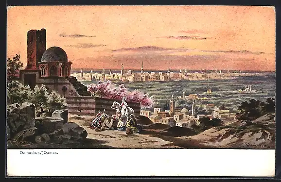 Künstler-AK F.Perlberg: Damaskus, Ortsansicht von oben