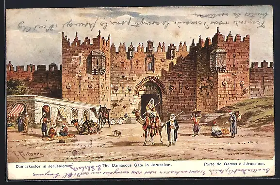 Künstler-AK F.Perlberg: Jerusalem, Das Damaskustor