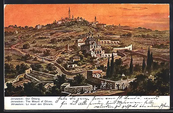 Künstler-AK F.Perlberg: Jerusalem, der Ölberg, the Mount of Olives, le mont des Oliviers